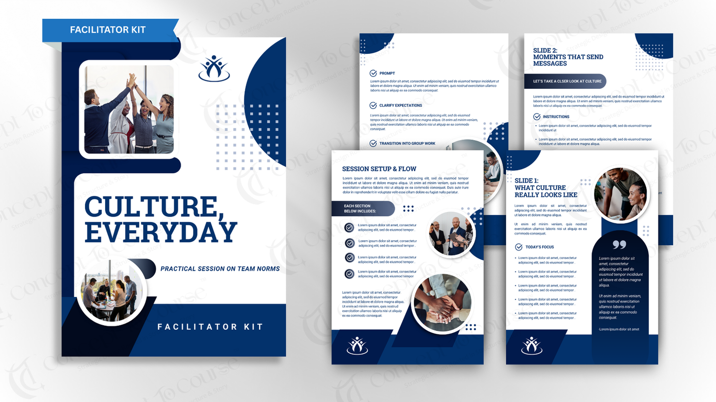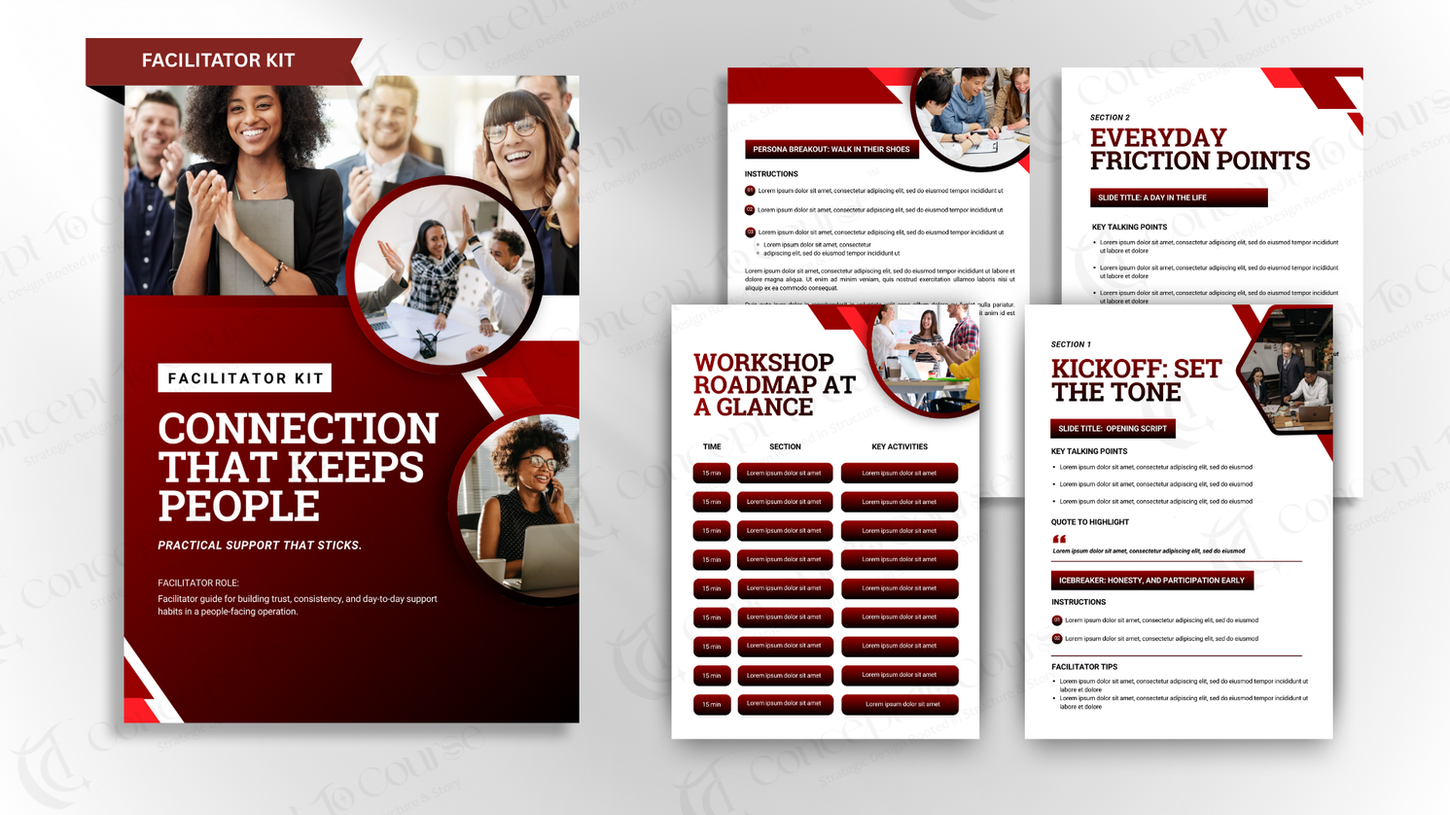 Delivery-ready guides that support consistent training — whether you're leading live sessions, onboarding teams, or running cohorts. Built to help any facilitator (or course owner) deliver with clarity and confidence.