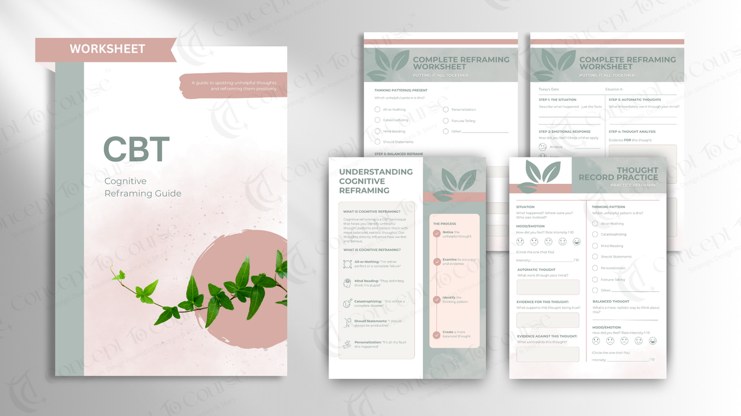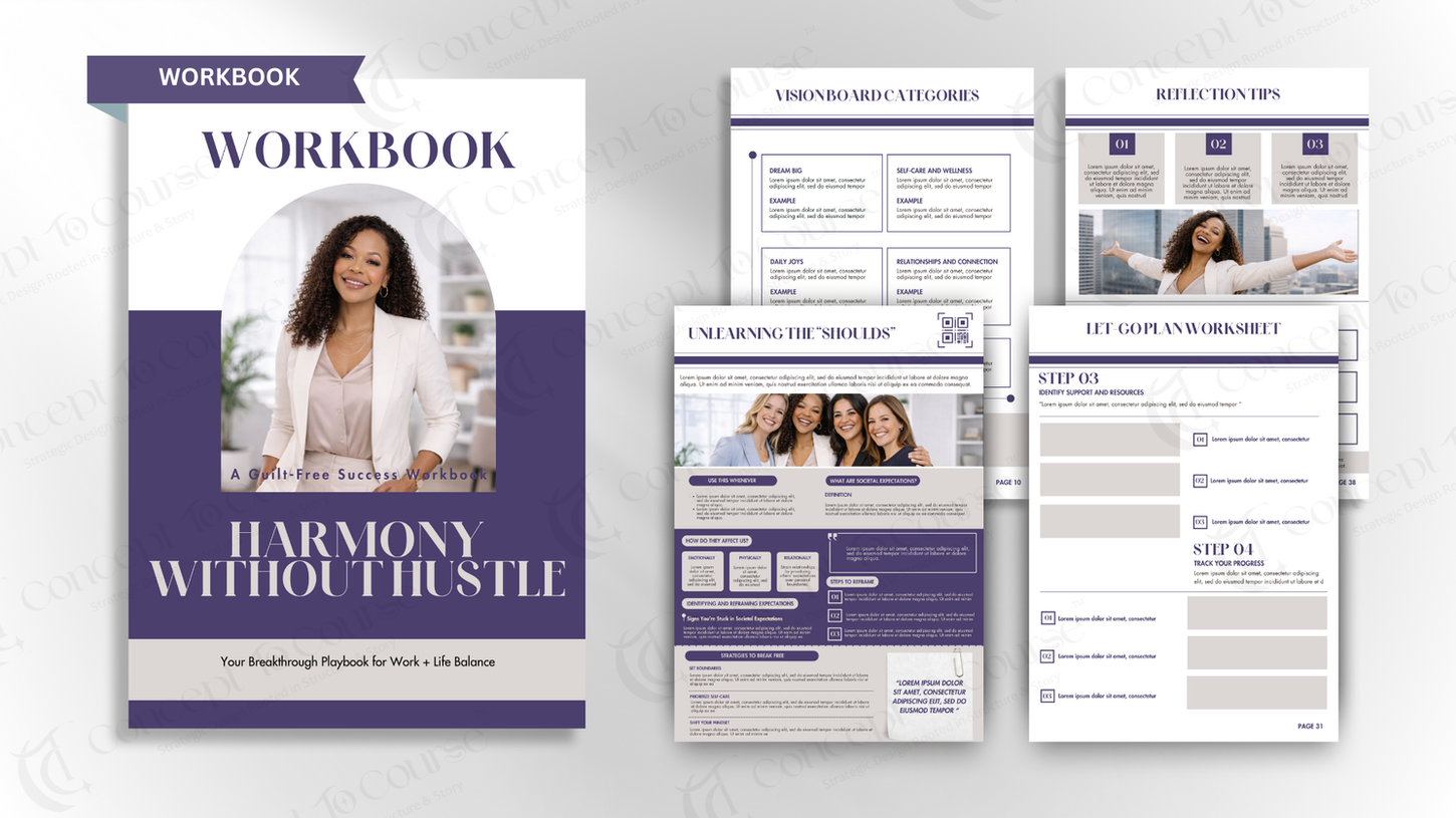 Workbooks that turn learning into action, designed to match the course flow and reinforce real application. Clean layouts, guided exercises, and practical tools learners can use immediately.